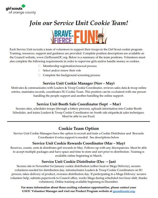 Service Unit Cookie Rewards Coordinator News